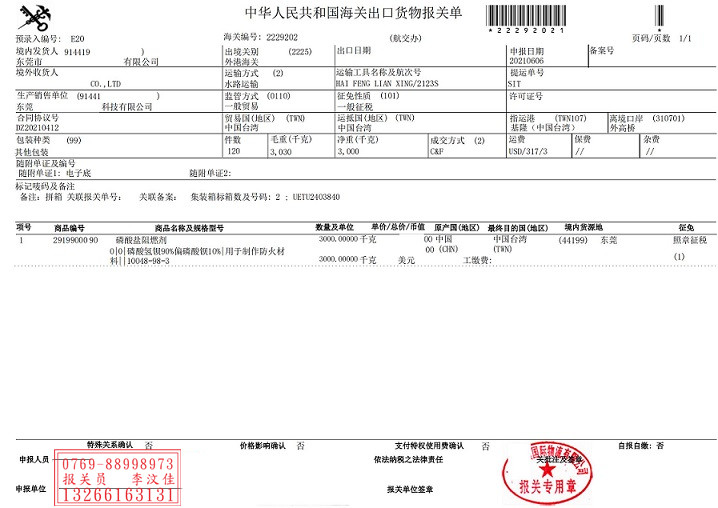 問(wèn)題一:磷酸鹽阻燃劑出口報(bào)關(guān)與其它貨物出口報(bào)關(guān)有何不同?