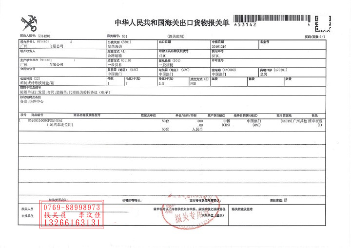 你知道GPS定位儀出口需要辦理什么特殊的手續(xù)嗎?你了解GPS定位儀出口報(bào)關(guān)操作流程嗎?下面是聚海供應(yīng)鏈小編剛剛協(xié)助廣州某企業(yè)順利完成GPS定位儀出口澳門的案例,客戶通過快件的方式出運(yùn),出口口岸是皇崗.由于該客戶不清楚出口報(bào)關(guān)手續(xù),幾經(jīng)輾轉(zhuǎn)最終解決了報(bào)關(guān)問題,確保了該批貨物的順利發(fā)運(yùn),也因此學(xué)到了出口報(bào)關(guān)文件的制作,為以后出口貨物奠定了基礎(chǔ).