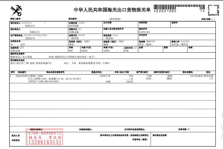 三,接著準(zhǔn)備乙醇鈉南沙港出口報(bào)關(guān)以及海事申報(bào)文件:
