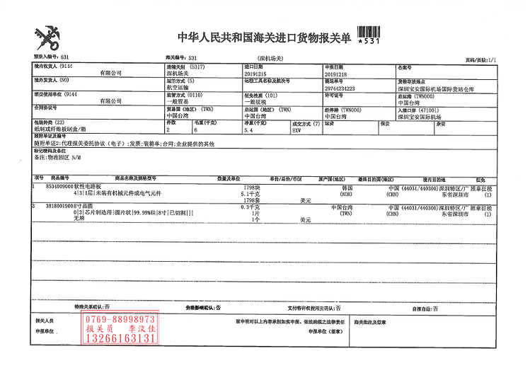 8寸晶圓因其體積小,貨值高等特點,各進口廠商一般都會選擇安排空運方式進口.聚海小編代理東莞松山湖某知名科技企業(yè)操作一票該貨物進口清關(guān)業(yè)務,貨物的原產(chǎn)國為韓國,而起運地為臺灣,清關(guān)口岸為深圳寶安機場.雖然貨物只有一片,但是貨值已達到差不多三千美金,而且客戶對清關(guān)時效要求的特別高.現(xiàn)在貨已經(jīng)清完關(guān)送至貨物工廠,可是回想起來,還是非常有感觸.
