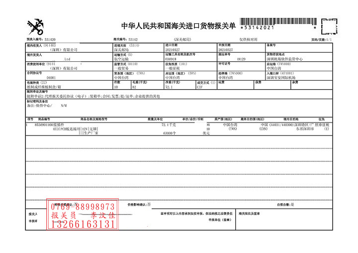 關(guān)于臺灣PCB板連接用接插件快遞包裹進口清關(guān)就為大家分析到這里,以上論述都是以案說案,遇到具體問題還是要具體分析,當然整個基本的框架是一樣的,也就是進口流程是完全一樣的,注意的事項聚海供應(yīng)鏈小編也解釋的比較詳細,如果遇到這些問題,不用擔心,可以安照我以上流程來做,相信會順利的將貨物清出來.