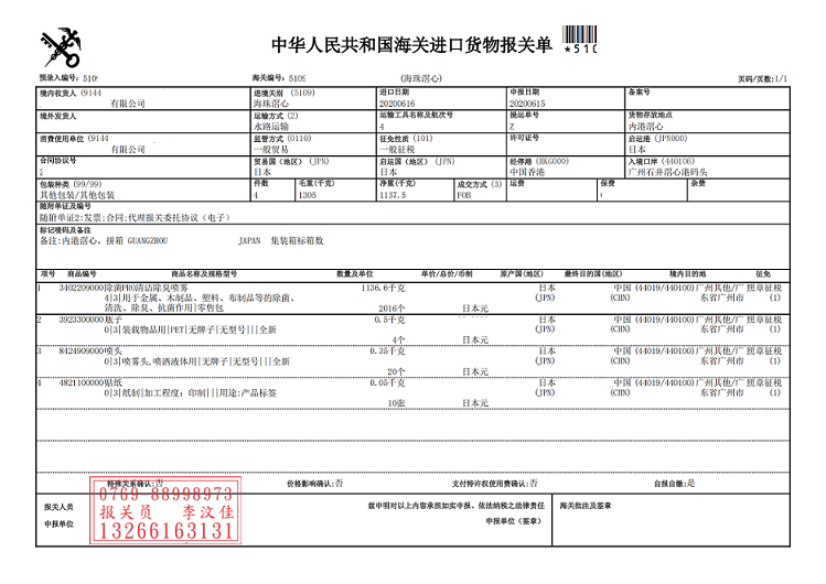 關于滘心港碼頭進口日本清潔除臭噴霧清關案例就暫且為各位分享到這兒,有需要的小伙伴路過不要忘記點贊,當然有總結不到位的地方,還請各位大神留下寶貴意見,謝謝.