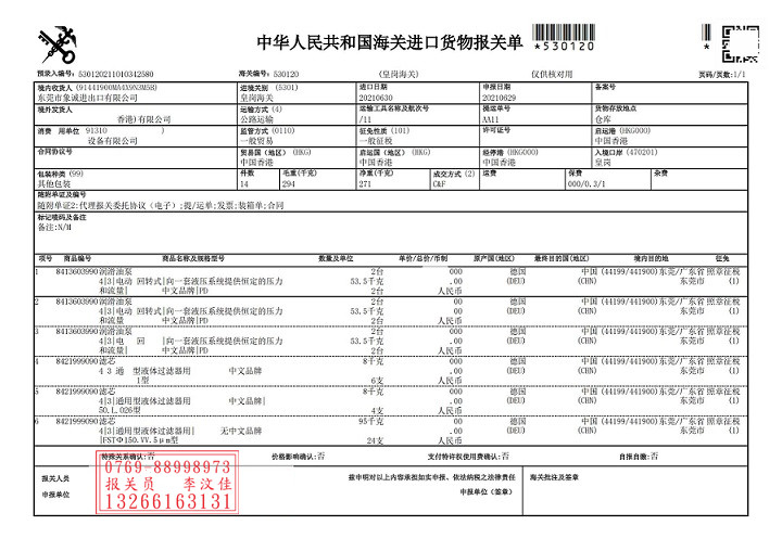 • 四,德國潤滑油泵退運(yùn)及香港進(jìn)口報(bào)關(guān)流程: