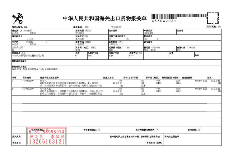 下面聚海小編為大家?guī)黻P(guān)于端子插入機(jī)深圳蛇口港報(bào)關(guān)出口,海運(yùn)至泰國(guó)曼谷港,然后再由當(dāng)?shù)厍尻P(guān)公司完成進(jìn)口清關(guān)和派送任務(wù)的一篇最新案例,希望對(duì)有需要的小伙伴帶來一絲希望.